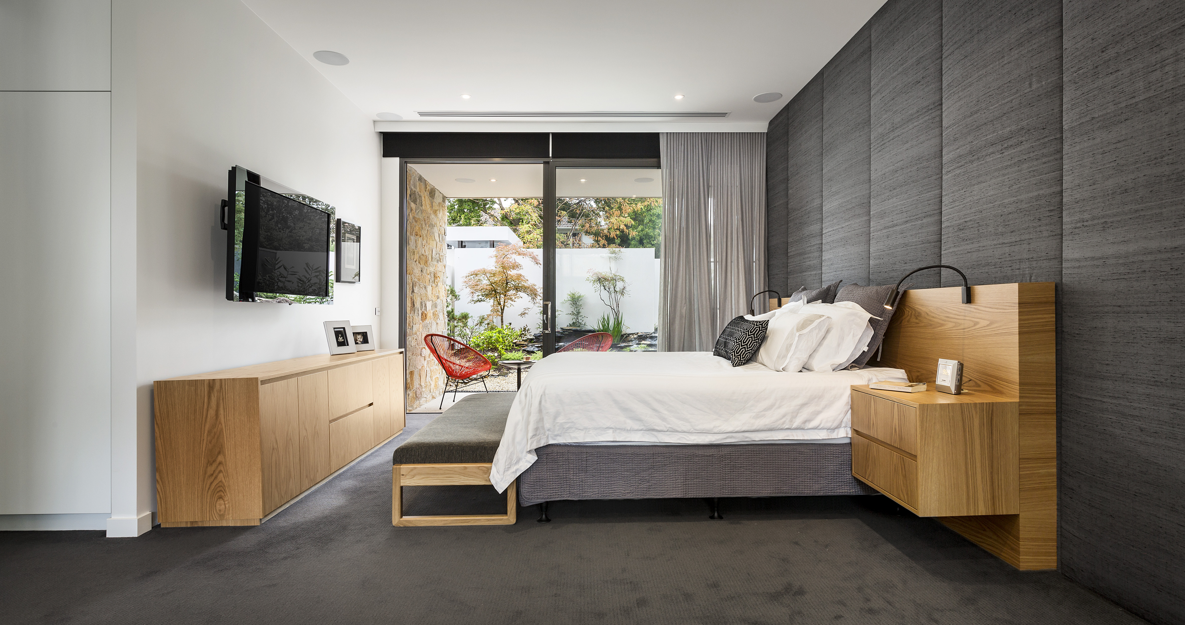 We worked closely with David Watson Architect and the client to fulfil the client’s brief of a low maintenance home that would feel like they were living in a resort. The house is built around a luscious north facing courtyard pool and garden. It was critical that the house be spacious enough for entertaining close and extended family and friends whilst maintaining the intimacy and cosiness that a couple could enjoy on their own.