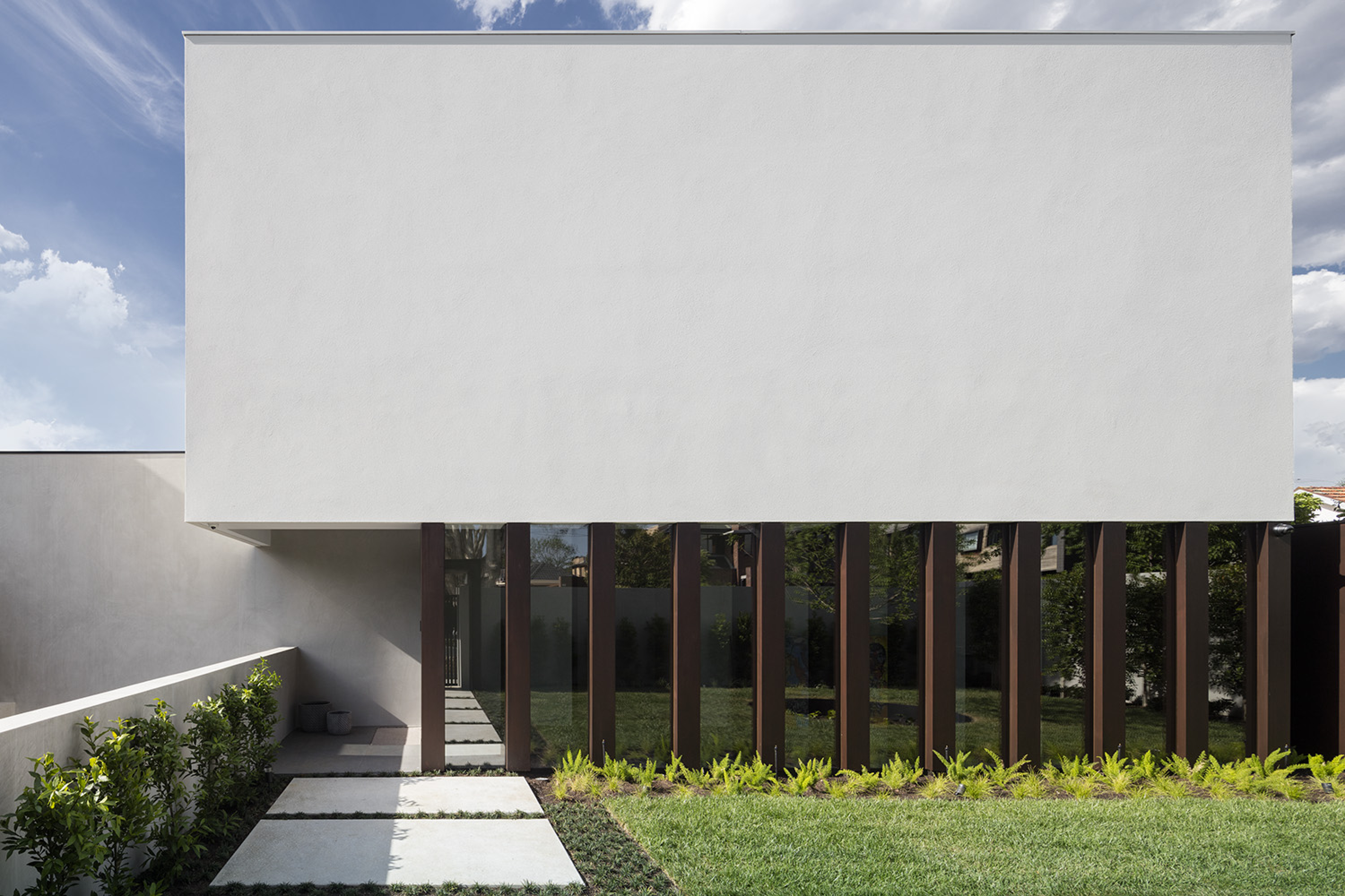 The Cosham house is another masterpiece by Workroom with gardens by Acre Design. The architecture of the home is understated and bold. The first floor is a large box that sits above a glass and concrete ground floor detailed with finer timber and metal elements.