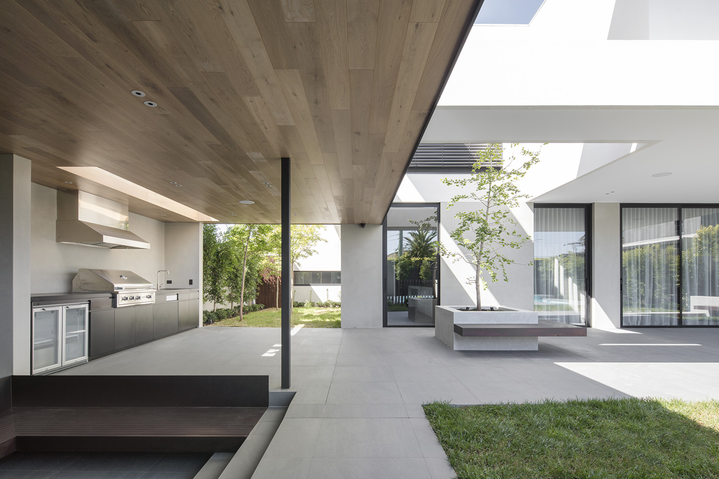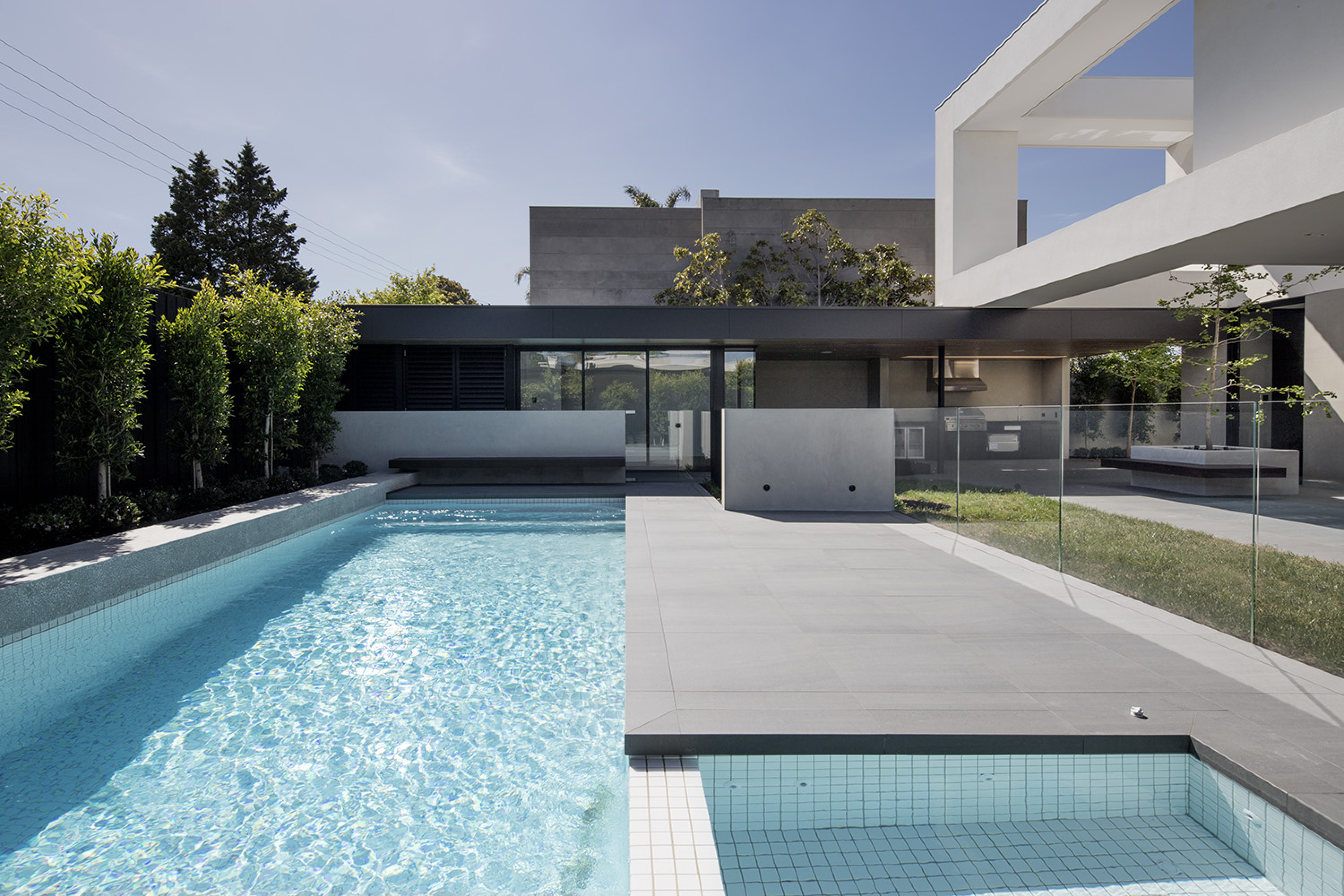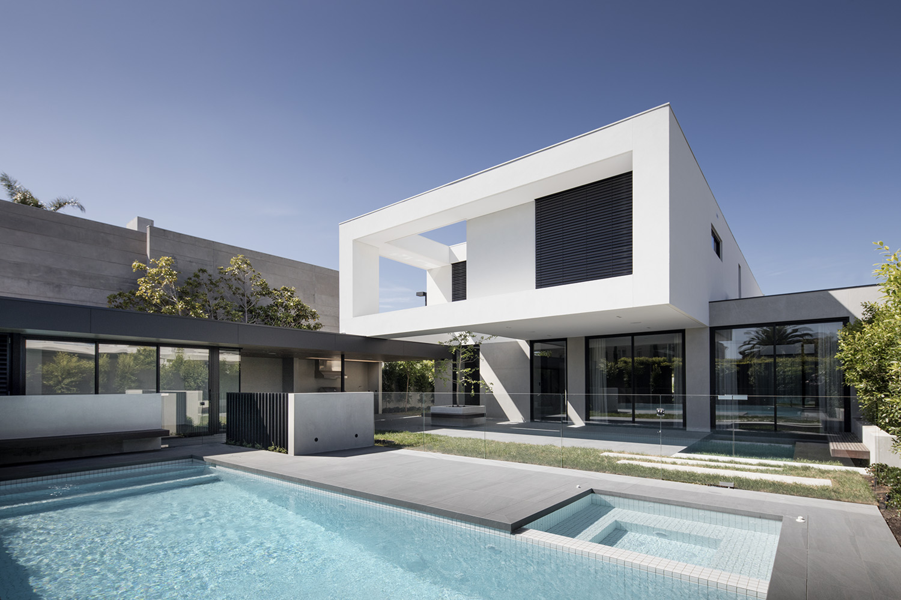 The home consists of large basement and two levels of housing above ground with a cabana and BBQ terrace area. The house has been built like a bunker with hundreds of cubic meters of concrete used to create the huge open spans above the basement, and ground floor living areas, and most notably, to provide the large cantilever to the first floor at the rear of the property.