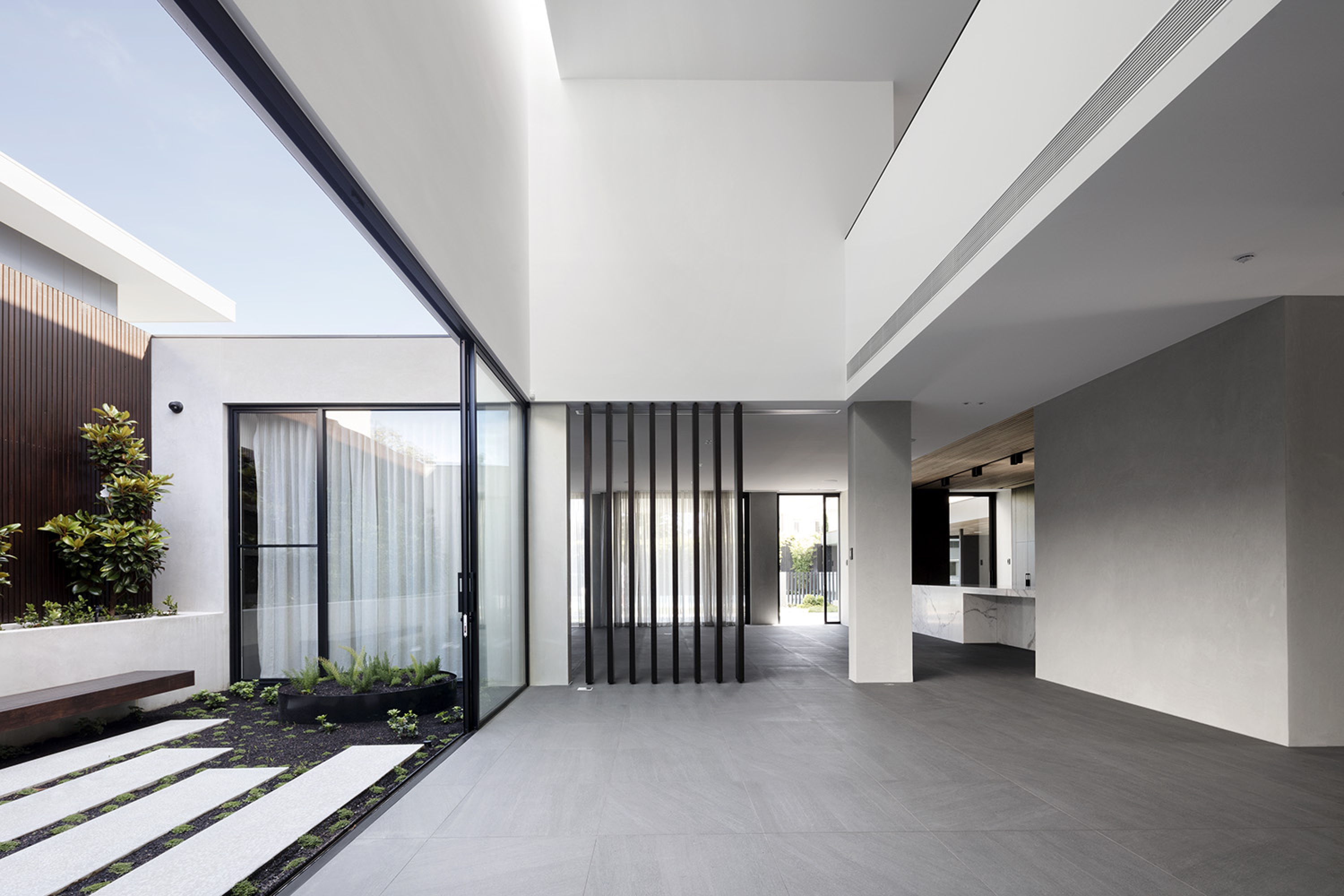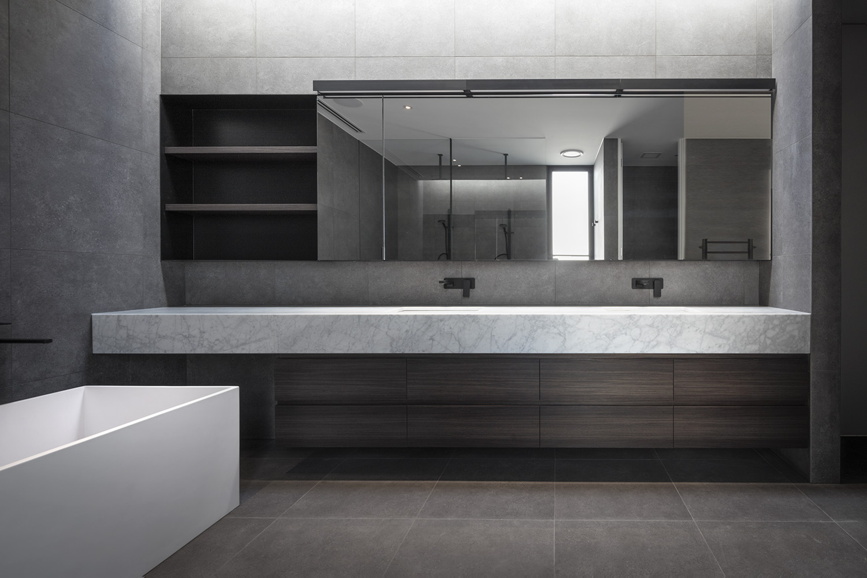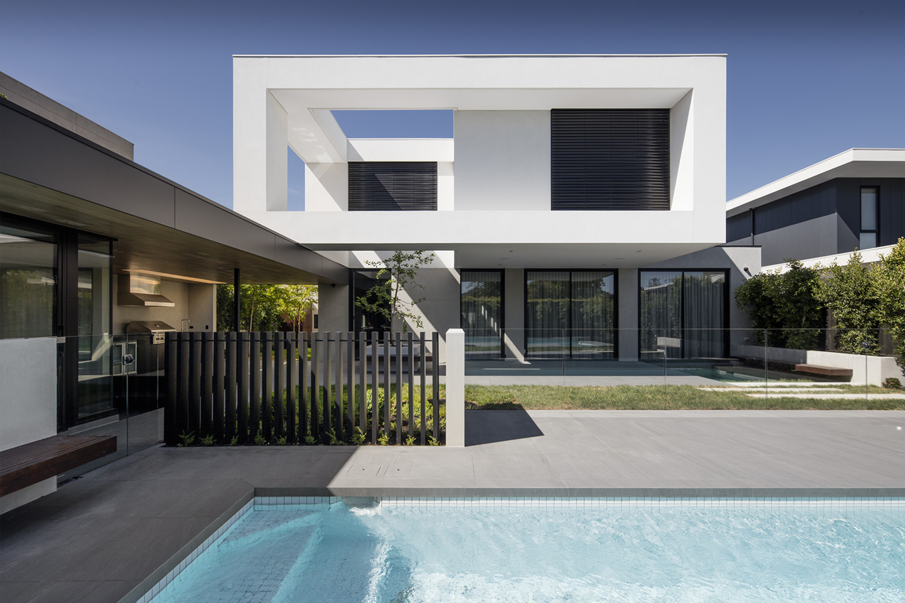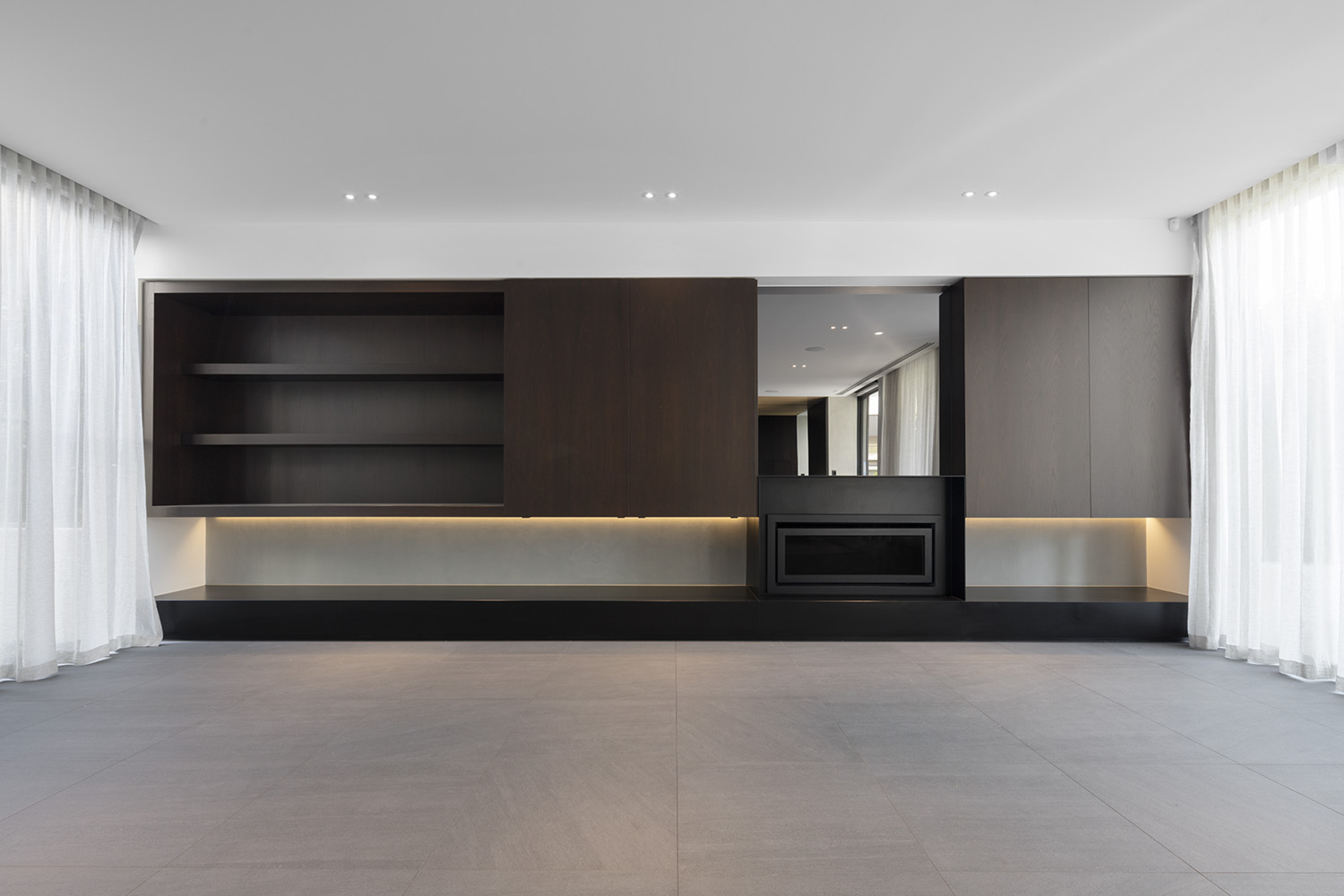 The home consists of large basement and two levels of housing above ground with a cabana and BBQ terrace area. The house has been built like a bunker with hundreds of cubic meters of concrete used to create the huge open spans above the basement, and ground floor living areas, and most notably, to provide the large cantilever to the first floor at the rear of the property.
