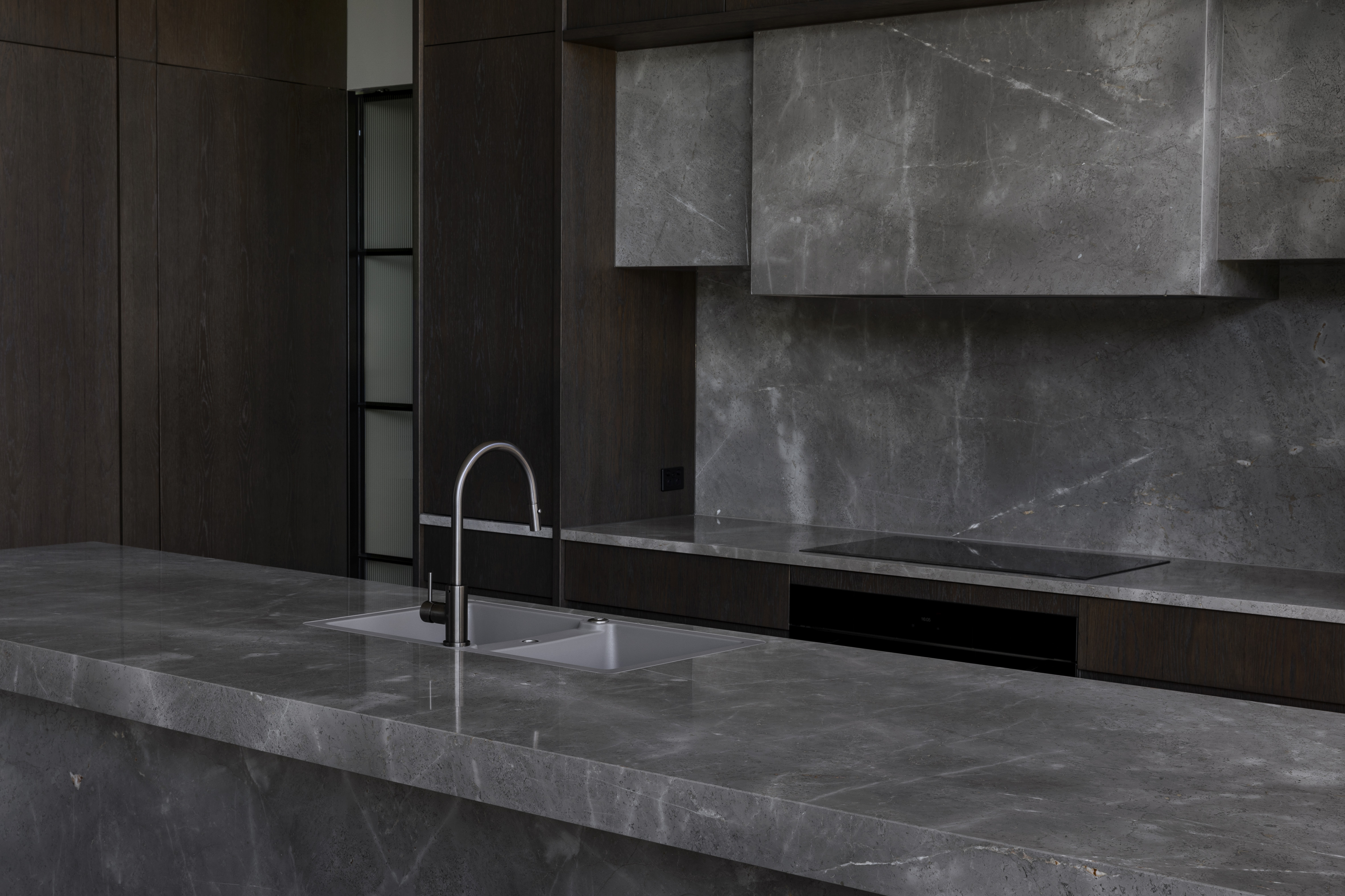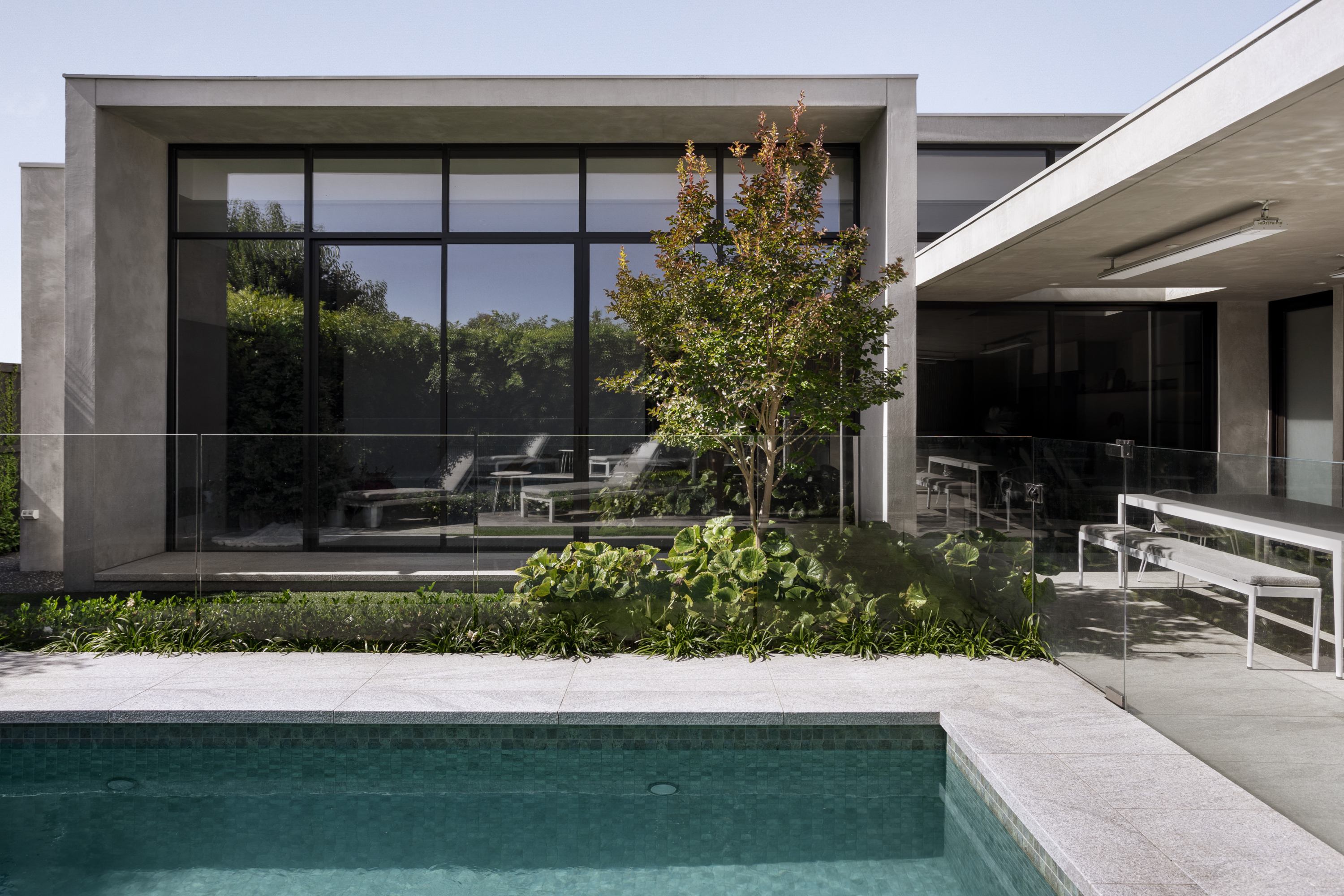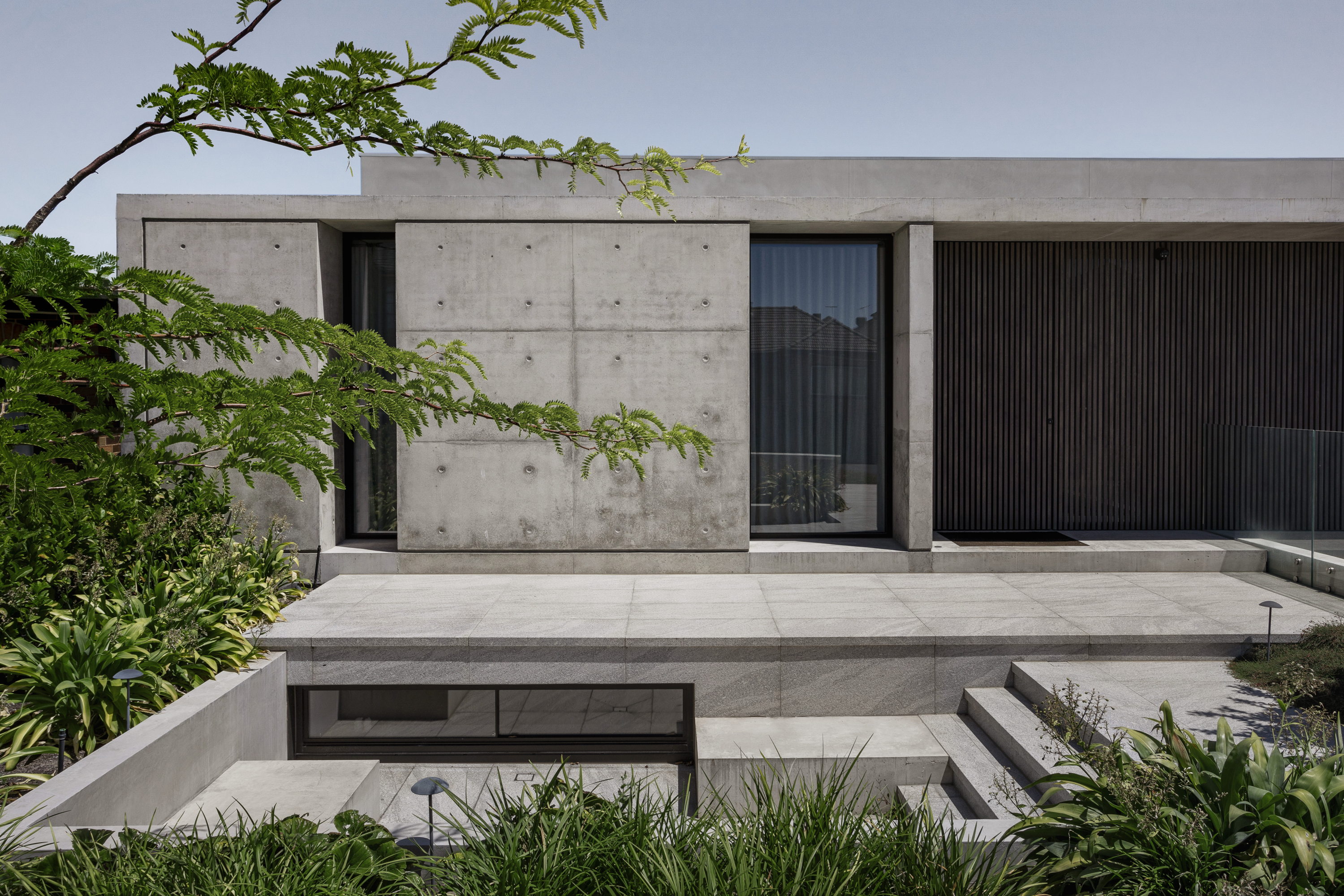 Designed by AGUSHI, the Jackson house blends mid-century and brutalism to form a structure that is robust and timeless. The home is a single level 4 bedroom dwelling that sits above a large basement containing habitable and garaging spaces.