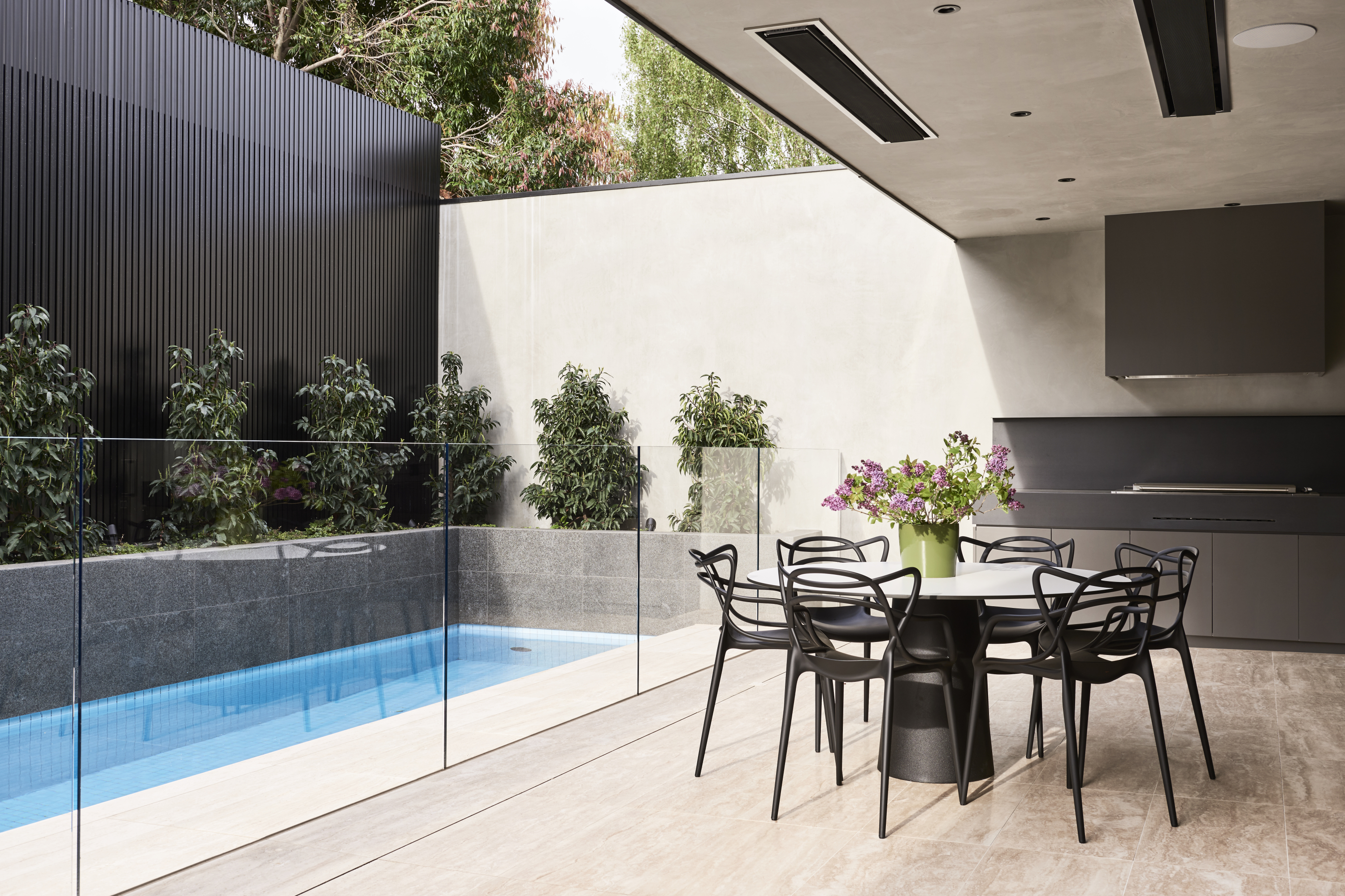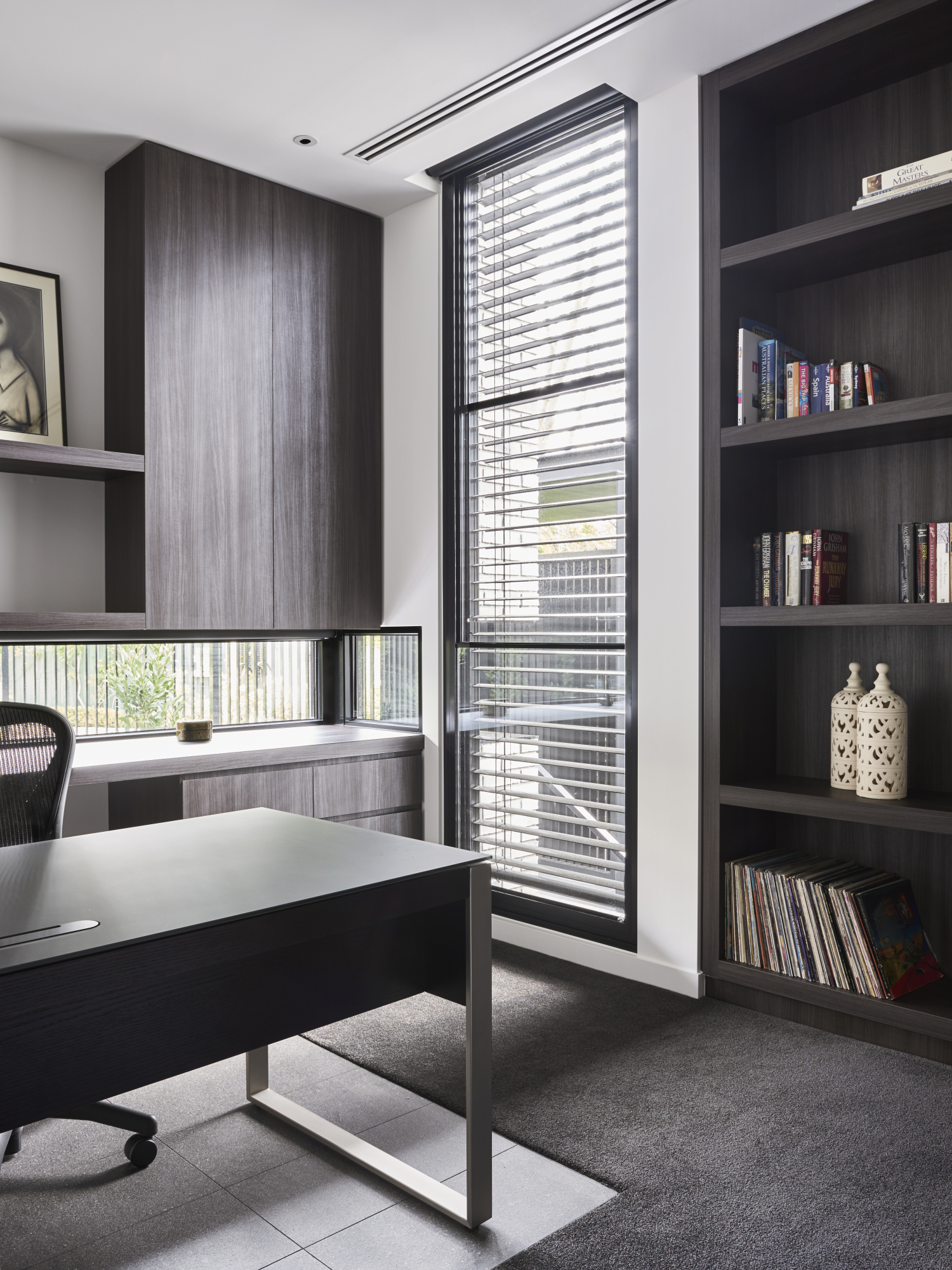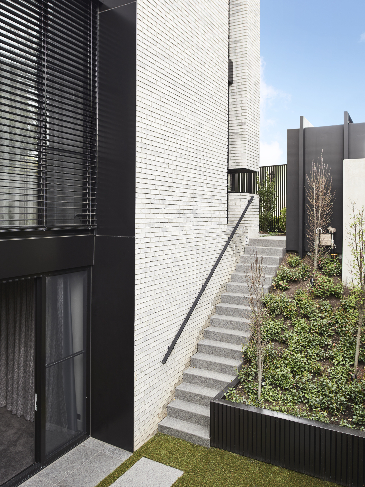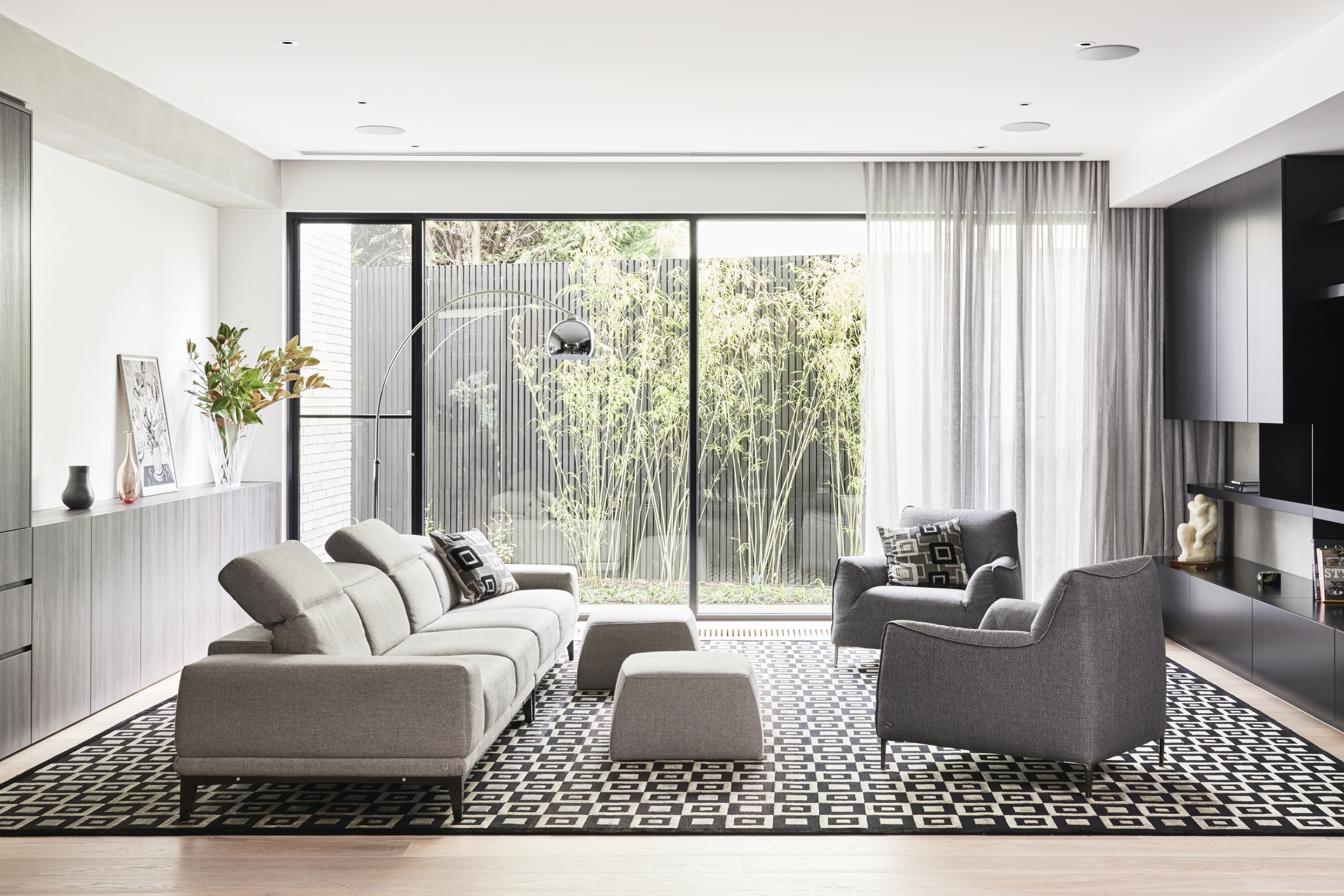 Our second project in this leafy Toorak Cul de Sac, Kent 2 has was another collaboration between us and David Watson Architect with Jack Merlo on the garden. The house is built on 480m2 of prime Melbourne real estate and consists of a five car basement, three bedrooms, two living zones, study and media room. The basement utilises a sunken courtyard which brings the garden into the underground spaces. A light filled north facing terrace and alfresco area overlooks the swimming pool to complete this ultimate low maintenance modern abode.